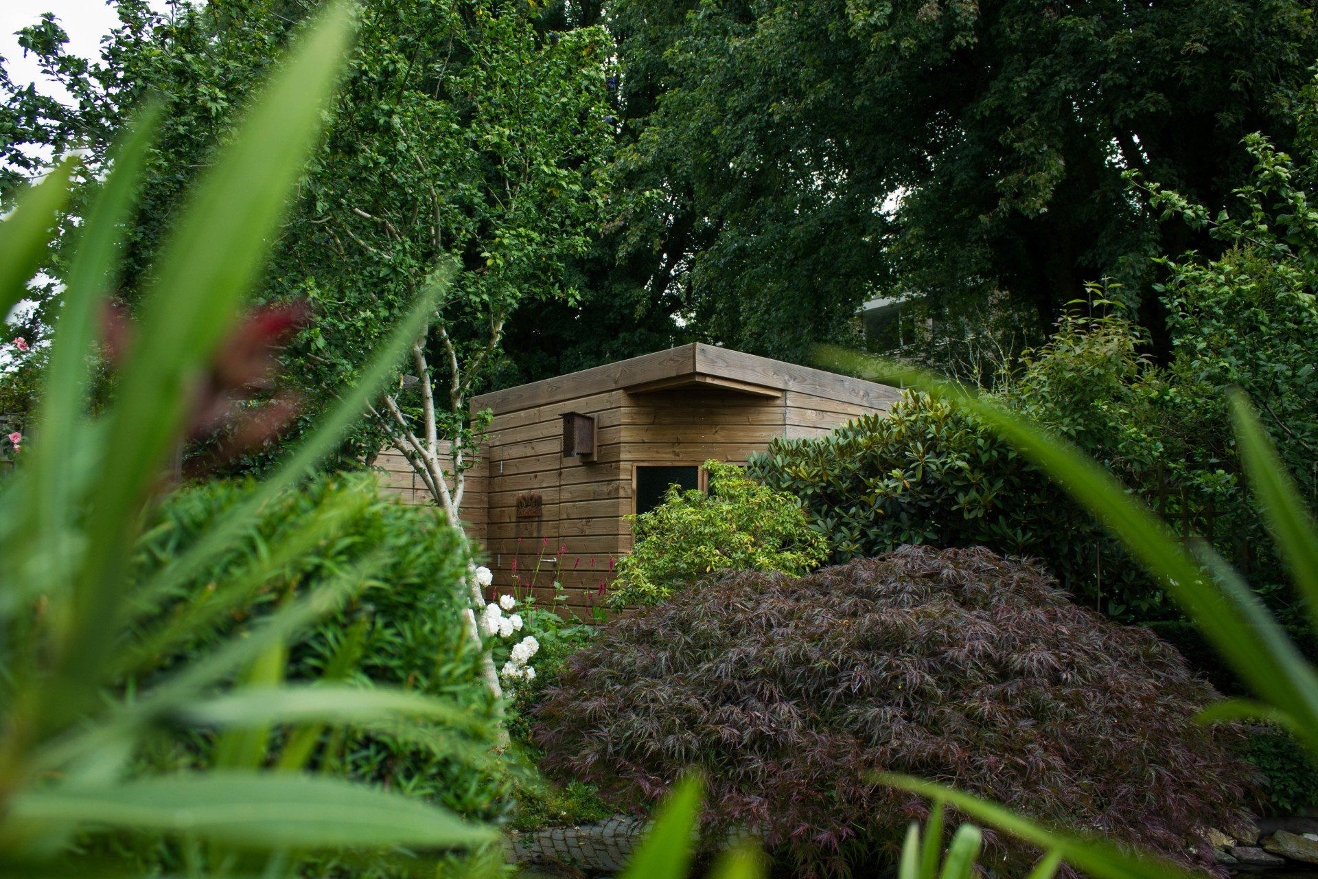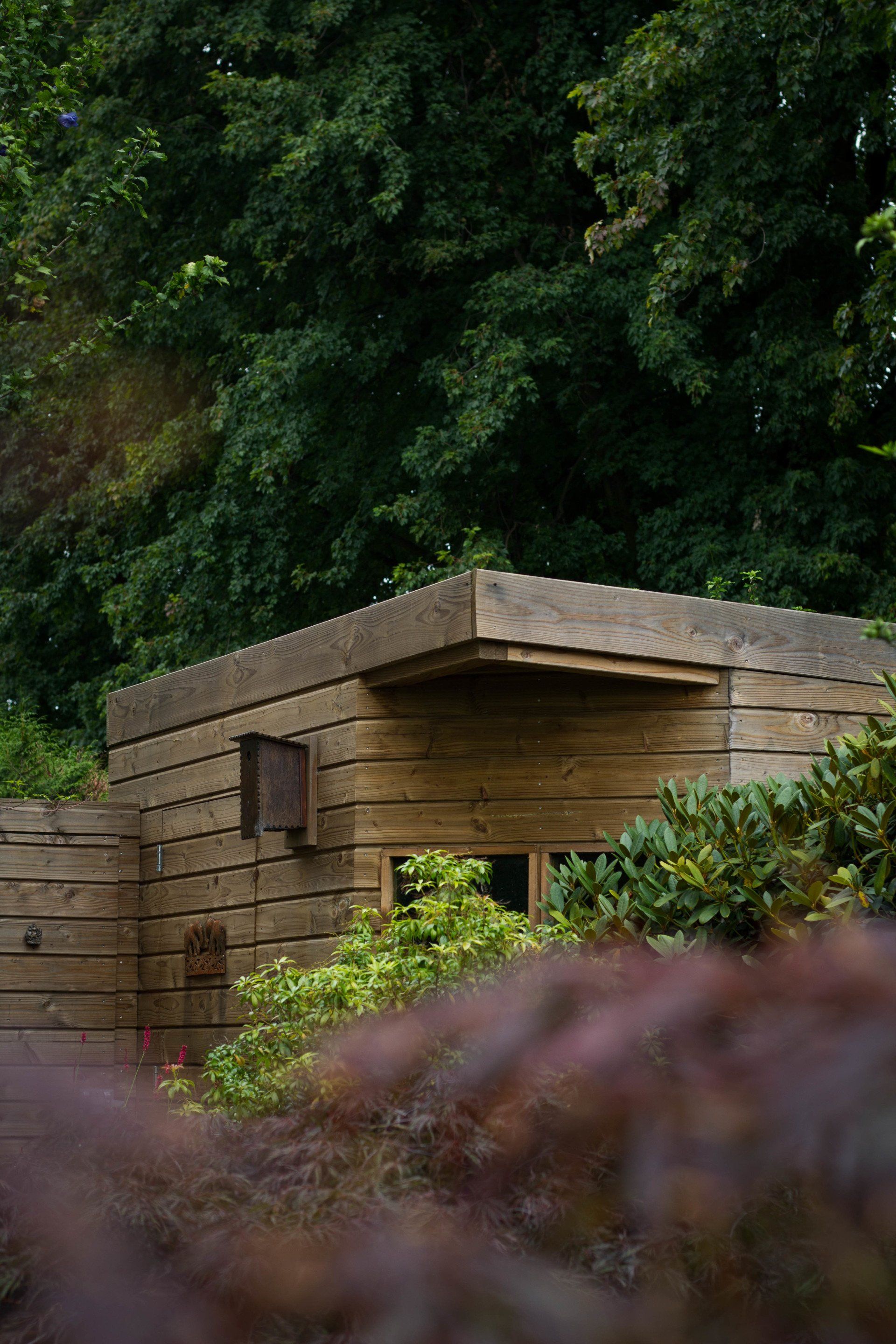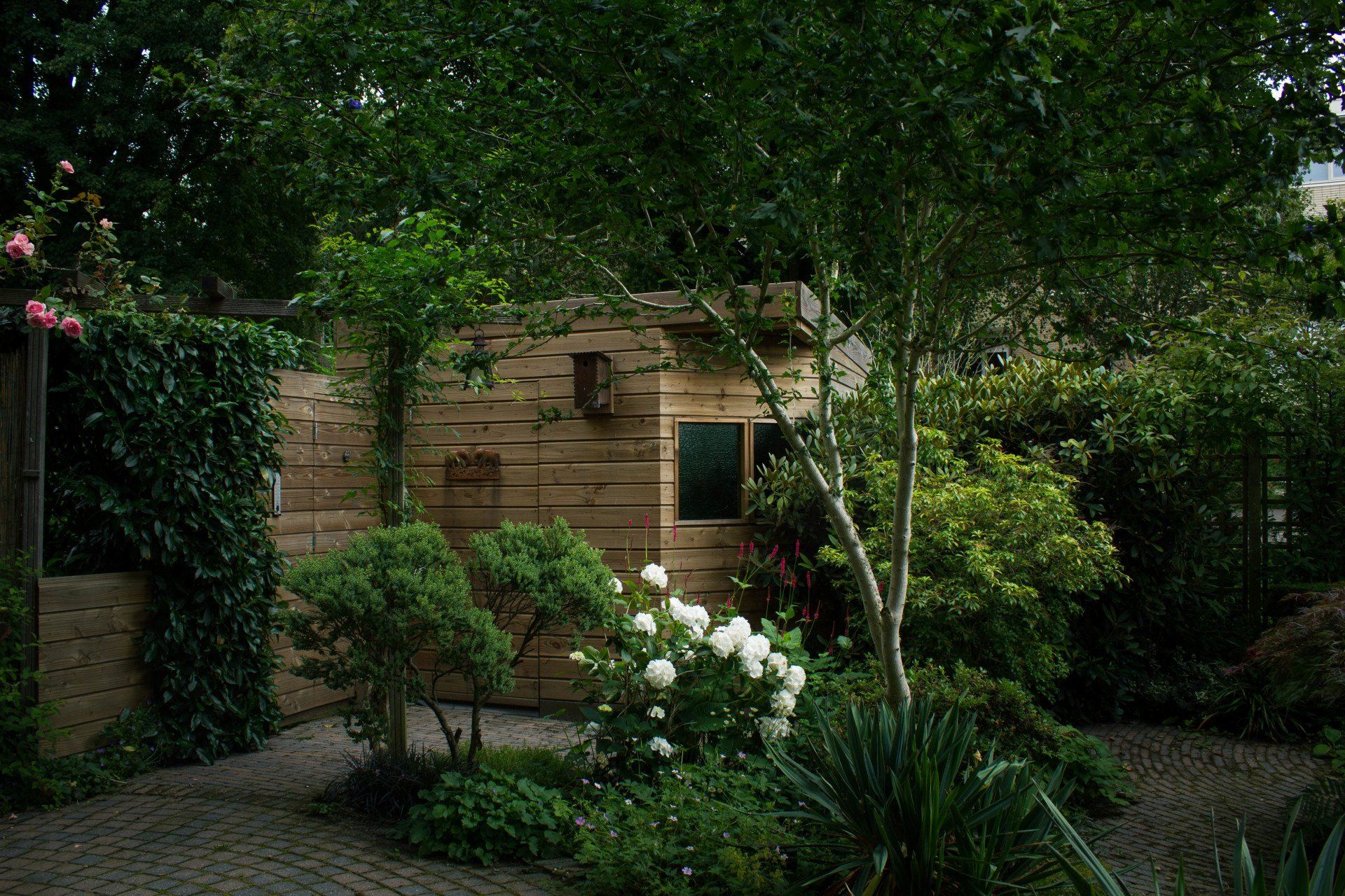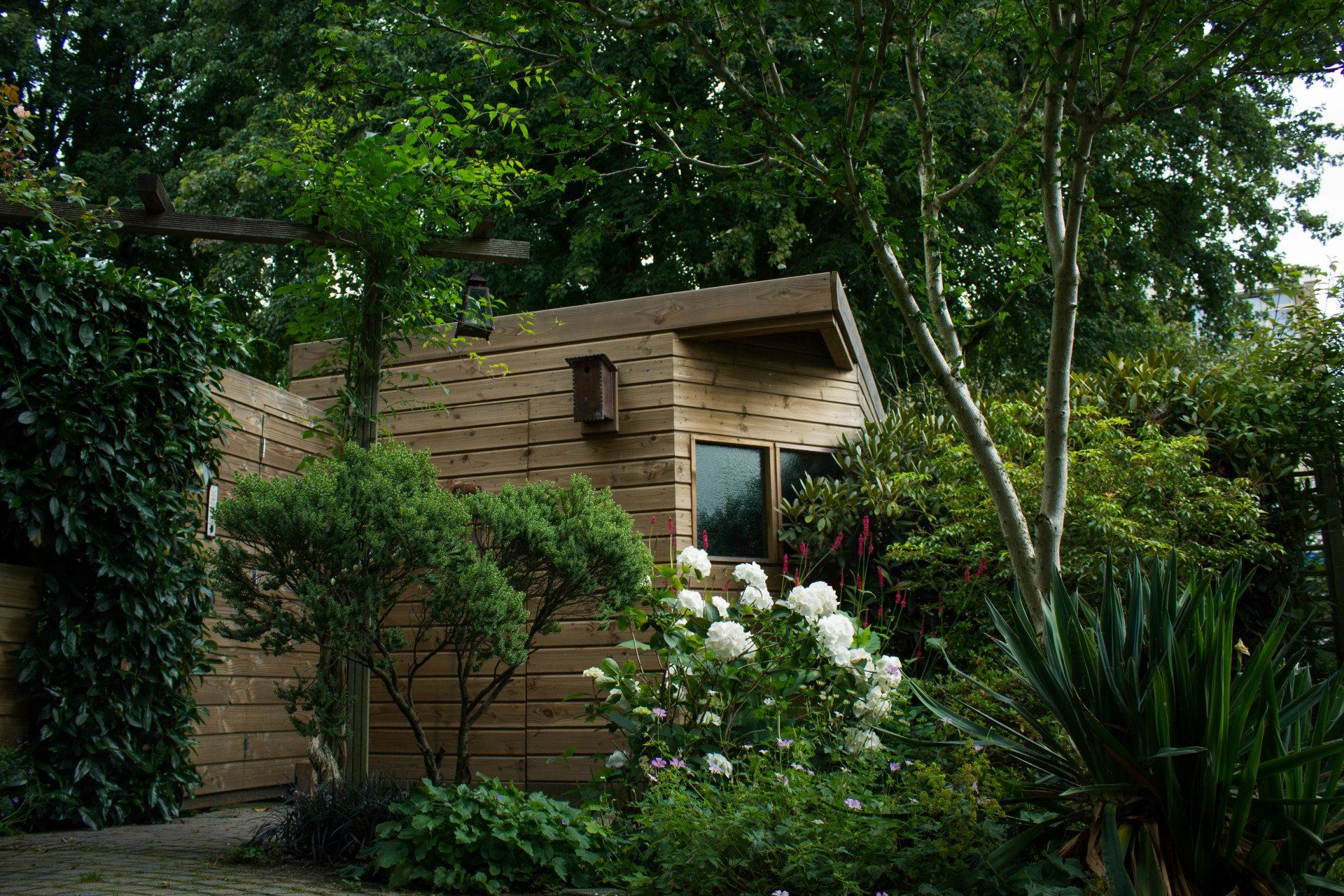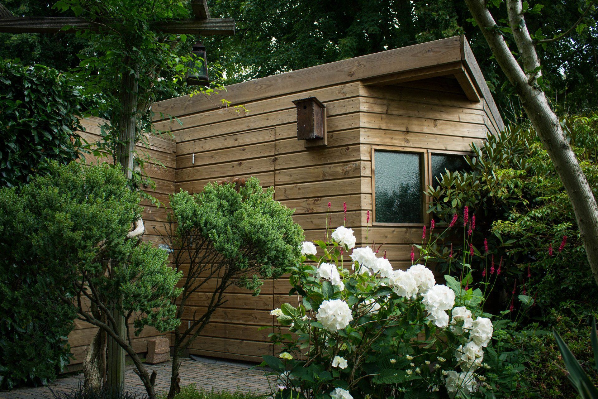 En niet alleen de schuur is bijzonder, ook de schutting heeft ook nog een verassing: een mooie deur die je bijna niet ziet, met achter de deur ruimte voor opslag. Deze bijzondere schuur is geheel verstelbaar in hoogte.
