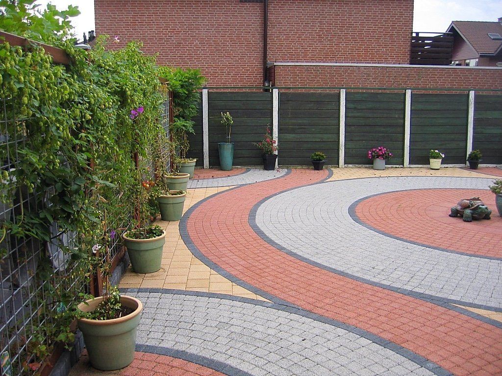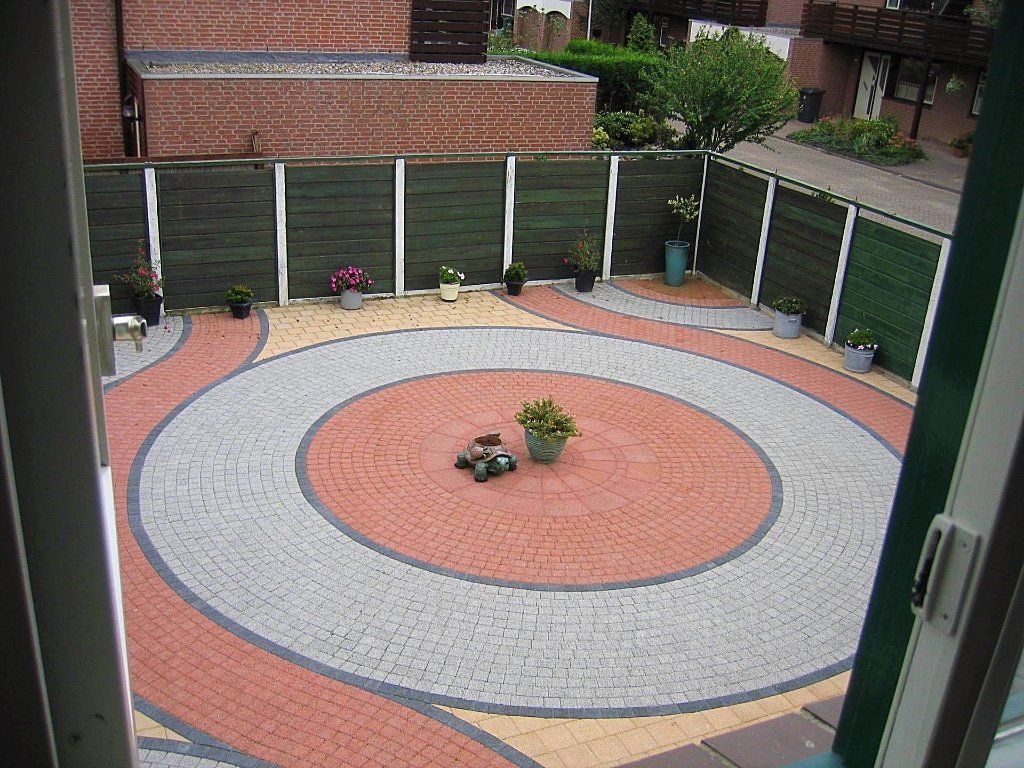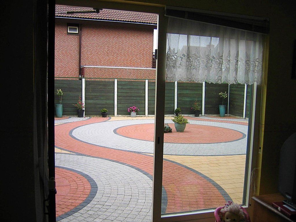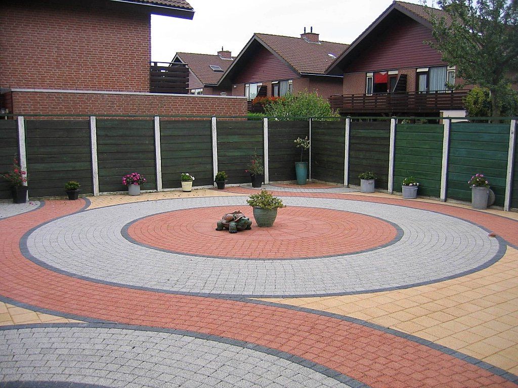 Deze bijzondere tuin van cirkels van verschillende kleuren en materiaal is een lust voor het oog.