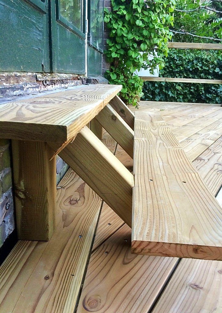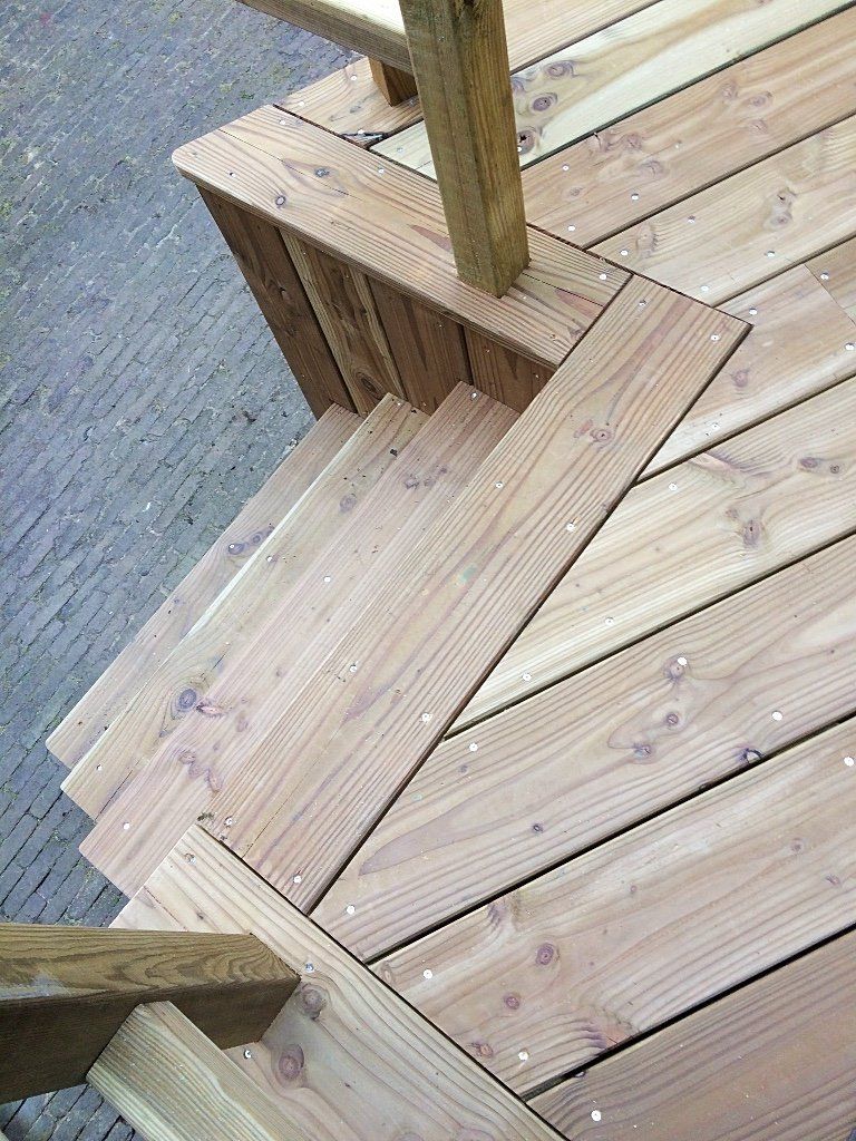 Wat een vakwerk is deze verhoogde douglas vlonder met trapjes en balustrade. Heel mooi ontwerp en heel mooi uitgevoerd! Een lust voor het oog!