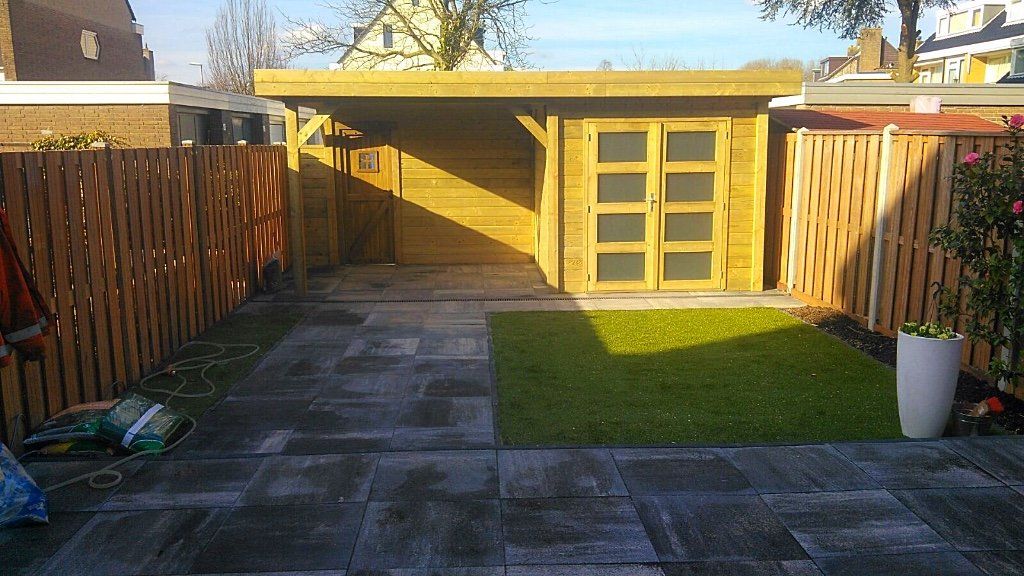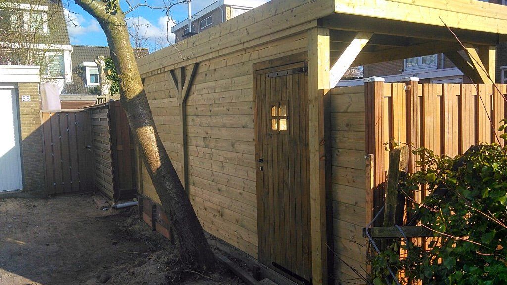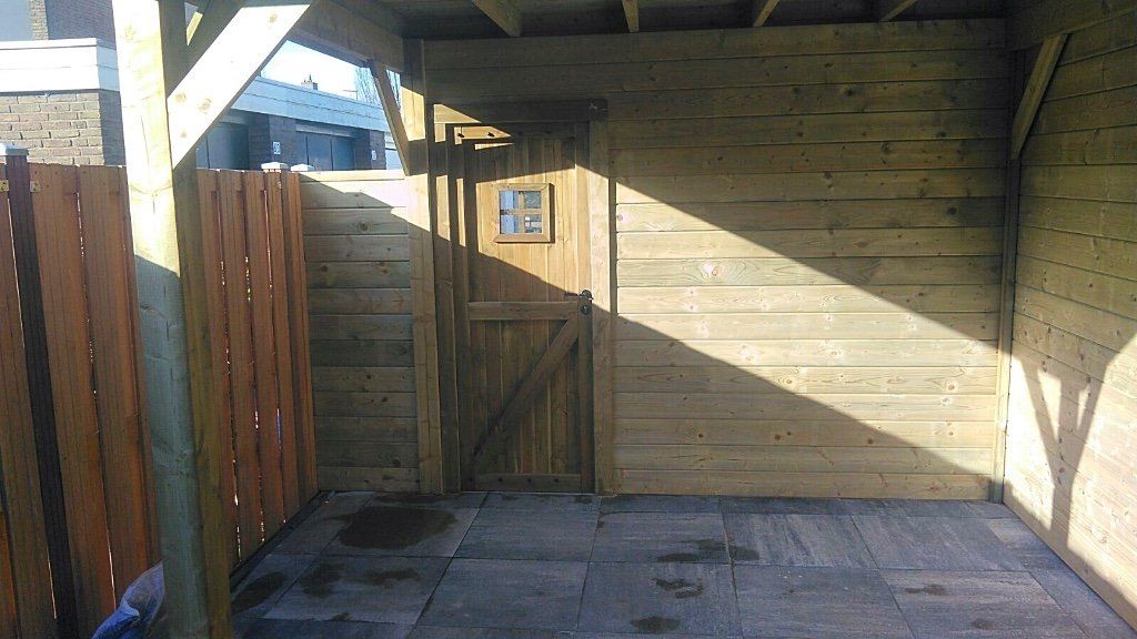 Af en toe worden we gebeld om een bouwpakket in elkaar te zetten of om het te begeleiden. De ene keer is het een schuur, tuinhuis of een overkapping of een combinatie zoals deze. In de praktijk blijkt het vaak lastiger om het zelf te doen of komen de maten toch niet goed uit en moet het aangepast worden. Daar draaien wij onze handen natuurlijk niet voor om! We zijn er voor elke probleem op te lossen, elk project te realiseren of we nu van mooie houten planken en palen iets moois maken of een kant en klaar pakket in elkaar te zetten. Het wordt sowieso mooi!