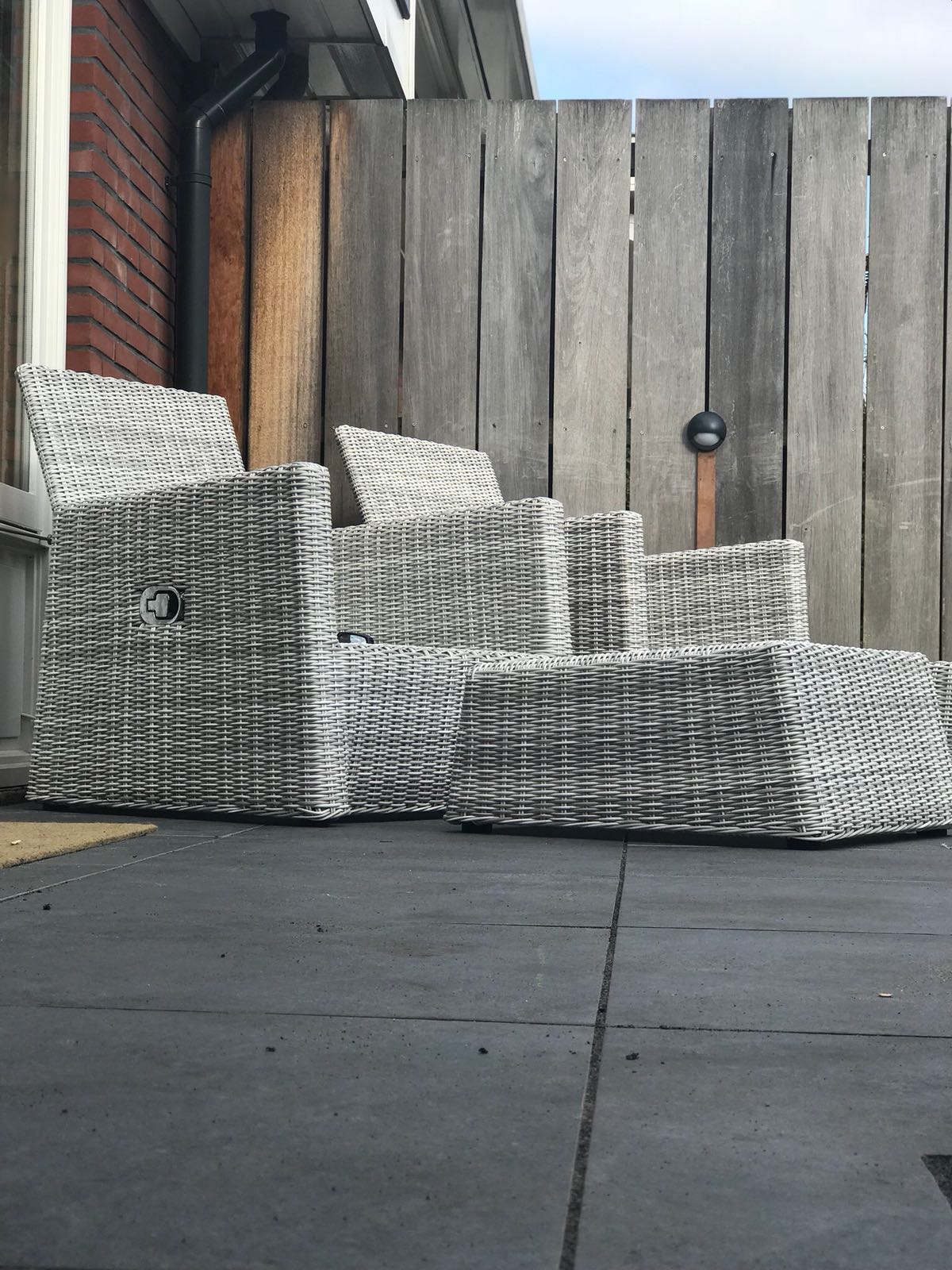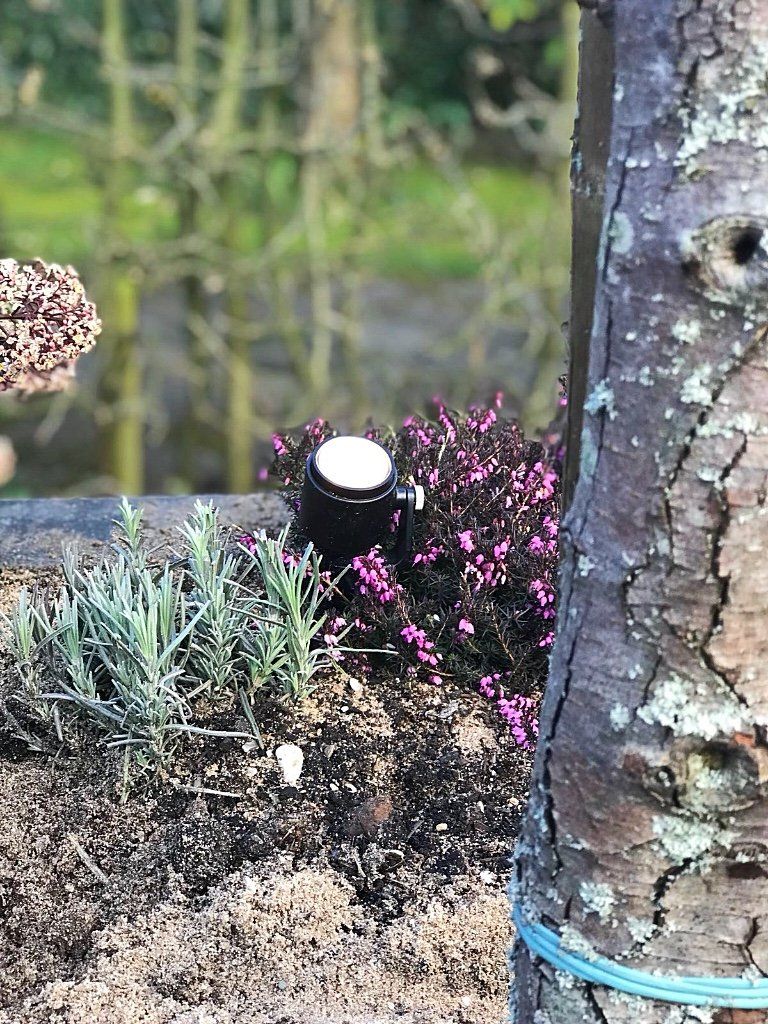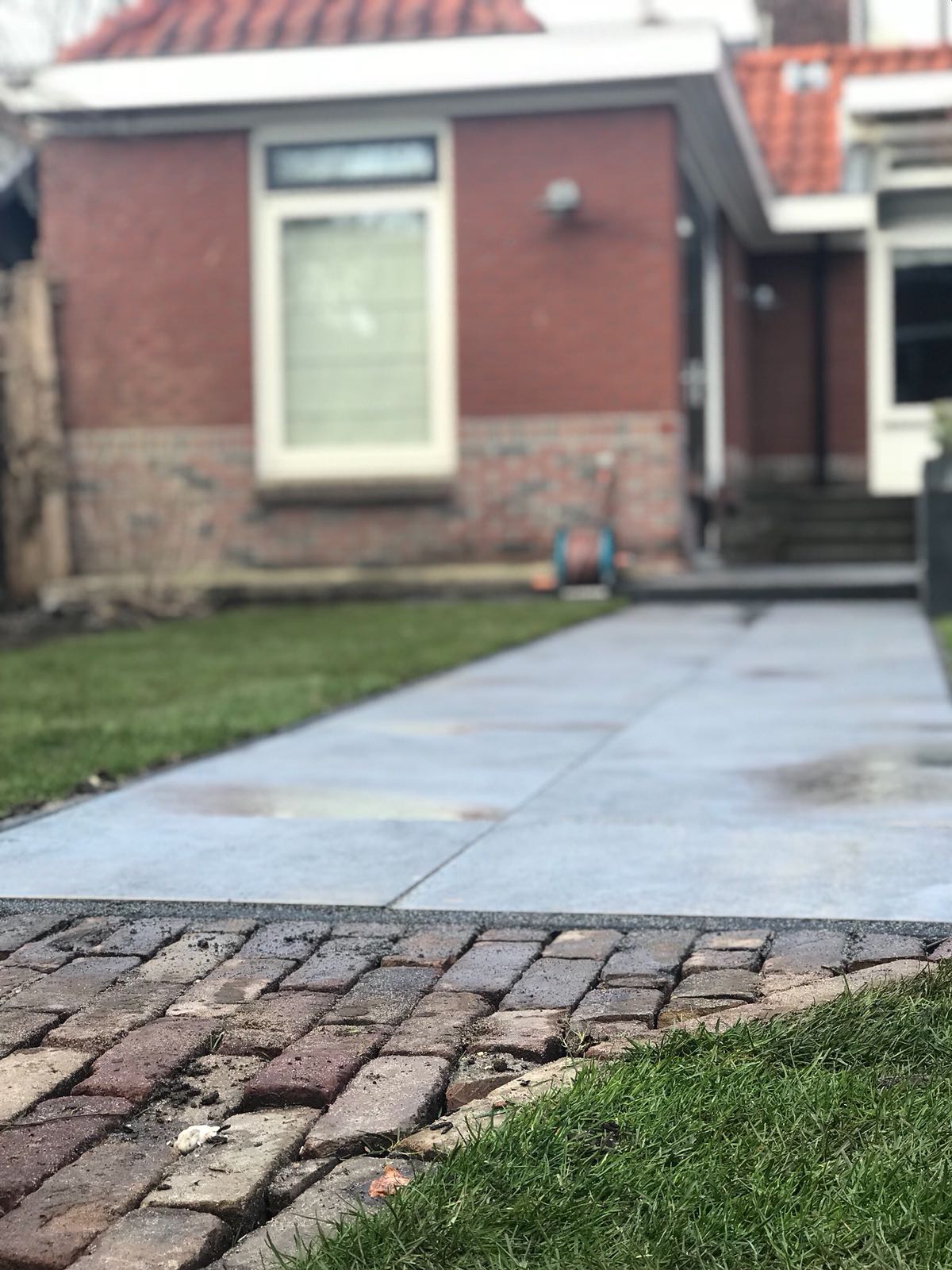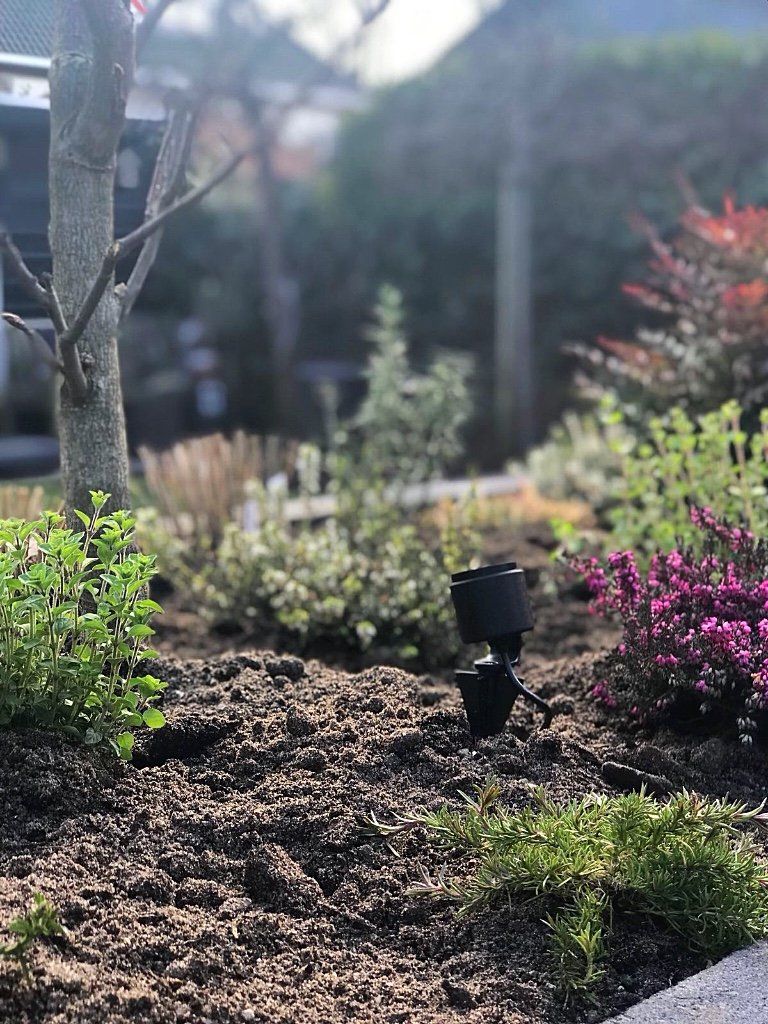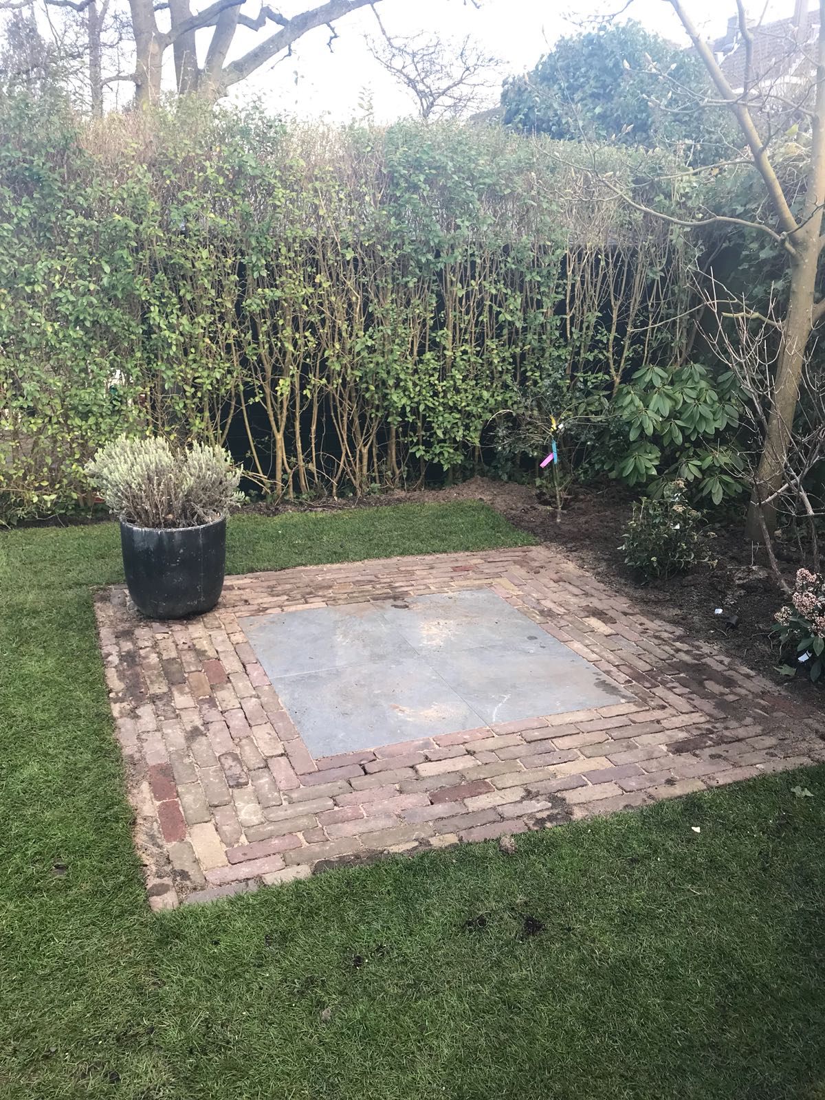 Mooie complete tuin met keramiek, verhoogde bakken van lineablokken. Afstapjes en trapjes van keramiek en lineablokken. Mooie beplanting en verlichting!