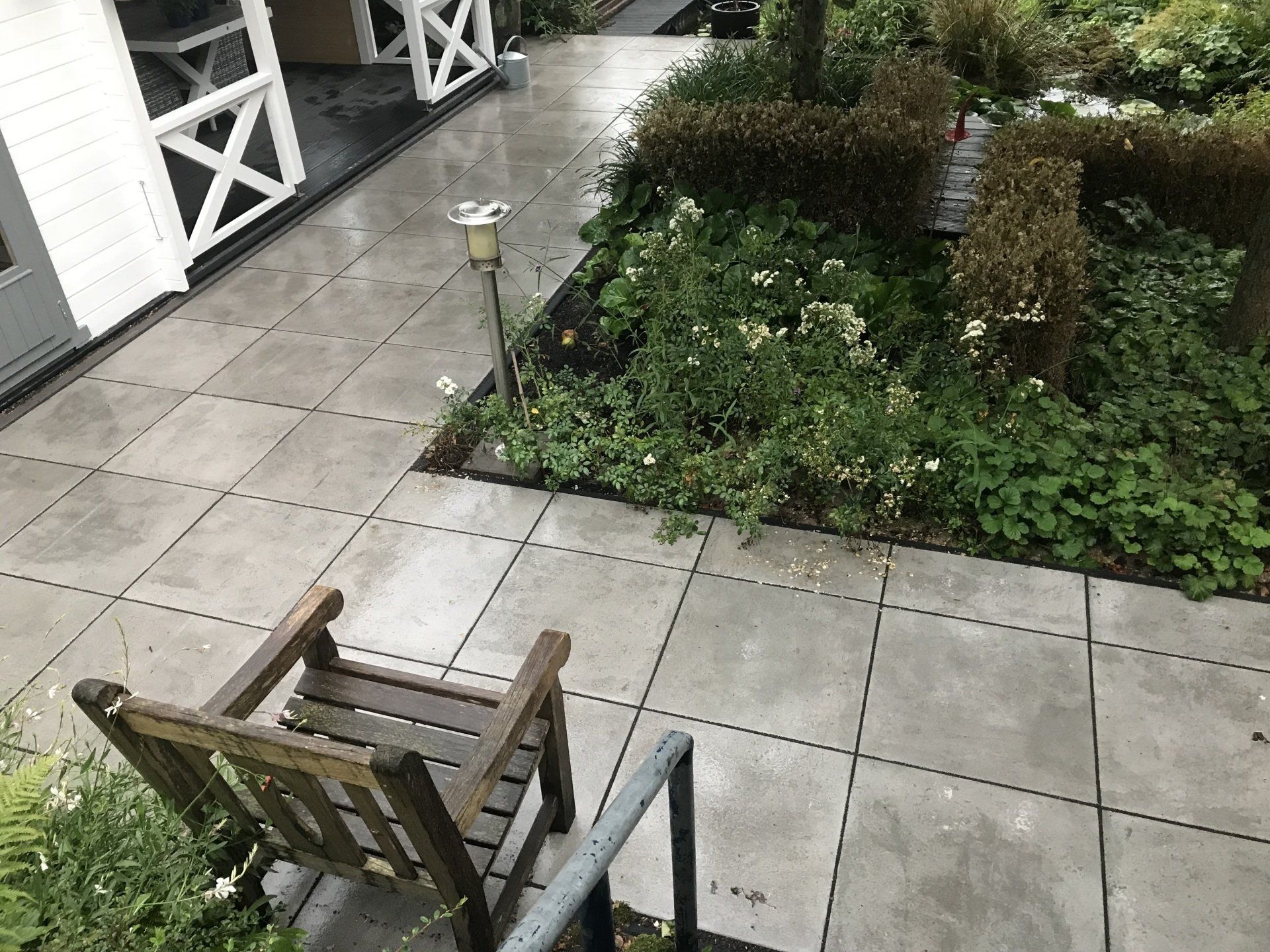 Mooi terras van keramiek tegels, gevoegd gelegd, dus geen onkruid tussen de tegels.!