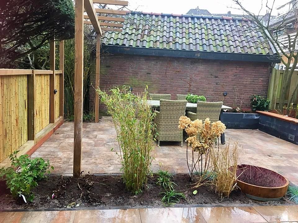 Bamboeschutting, pergola & zweedsrabat