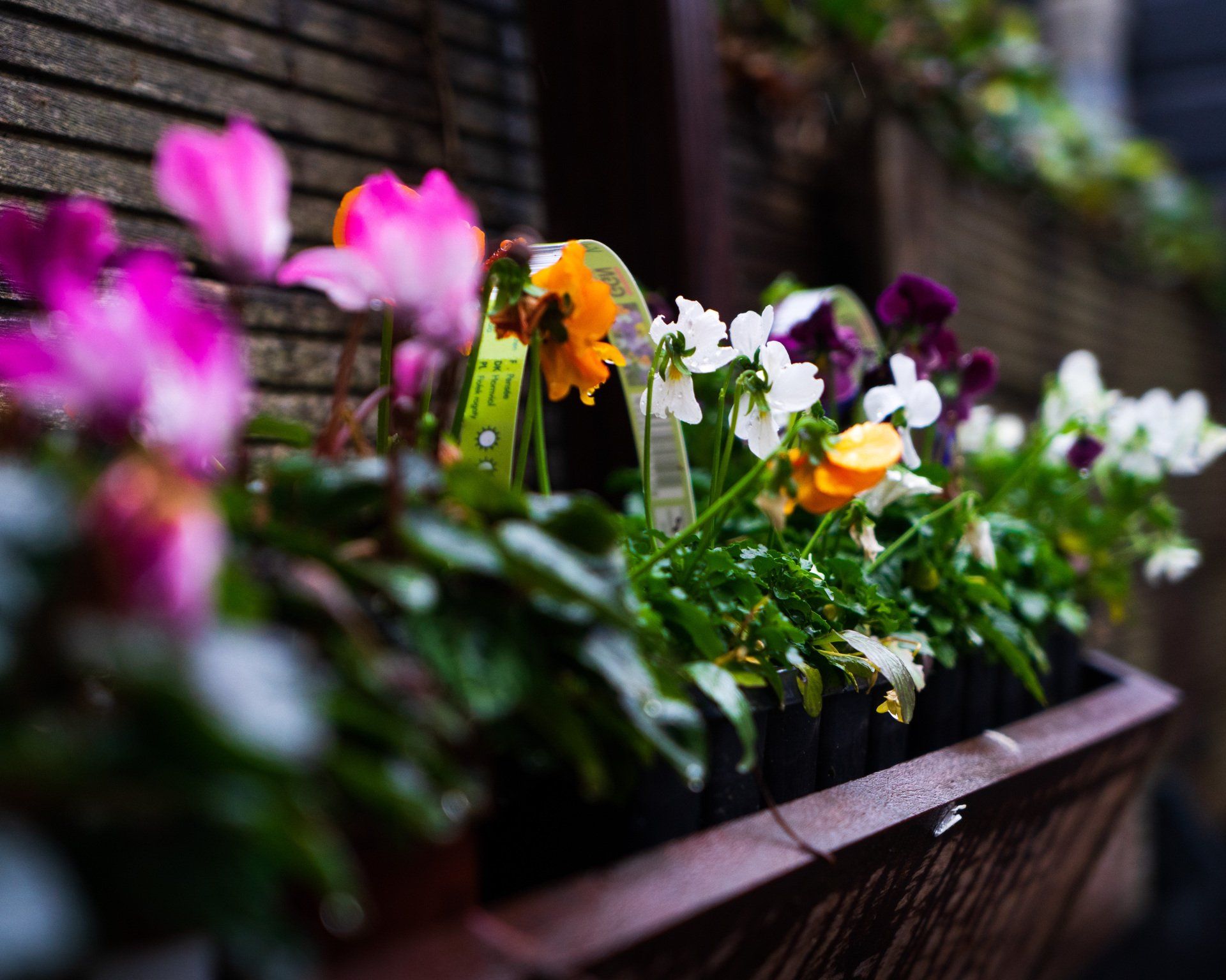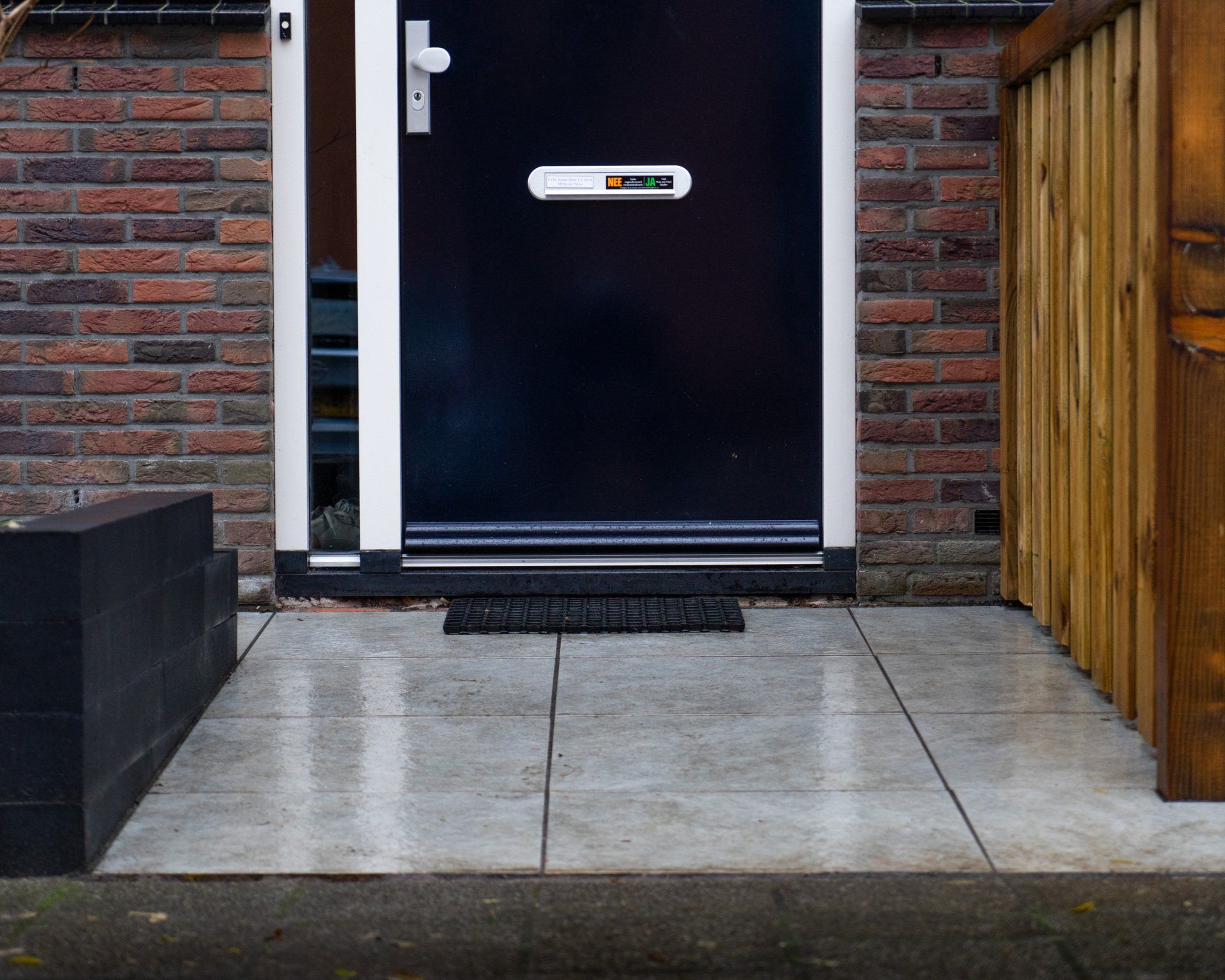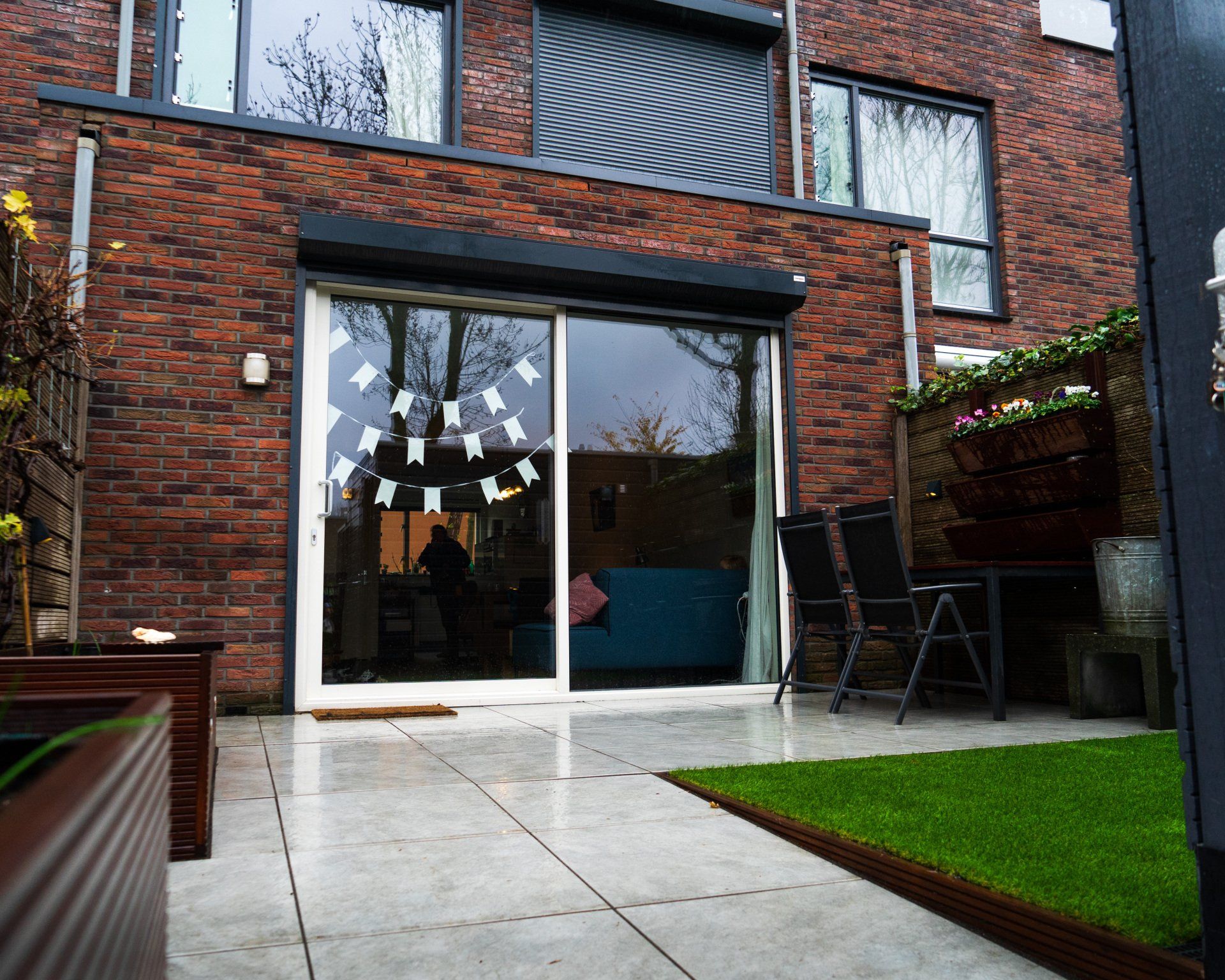 In de voortuin is gekozen voor verhoogde lineablokken bloembakken.