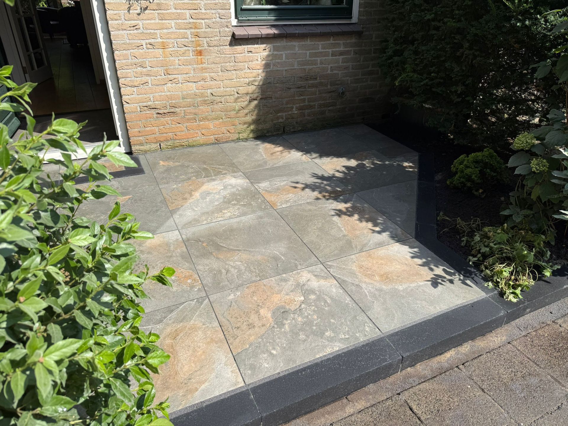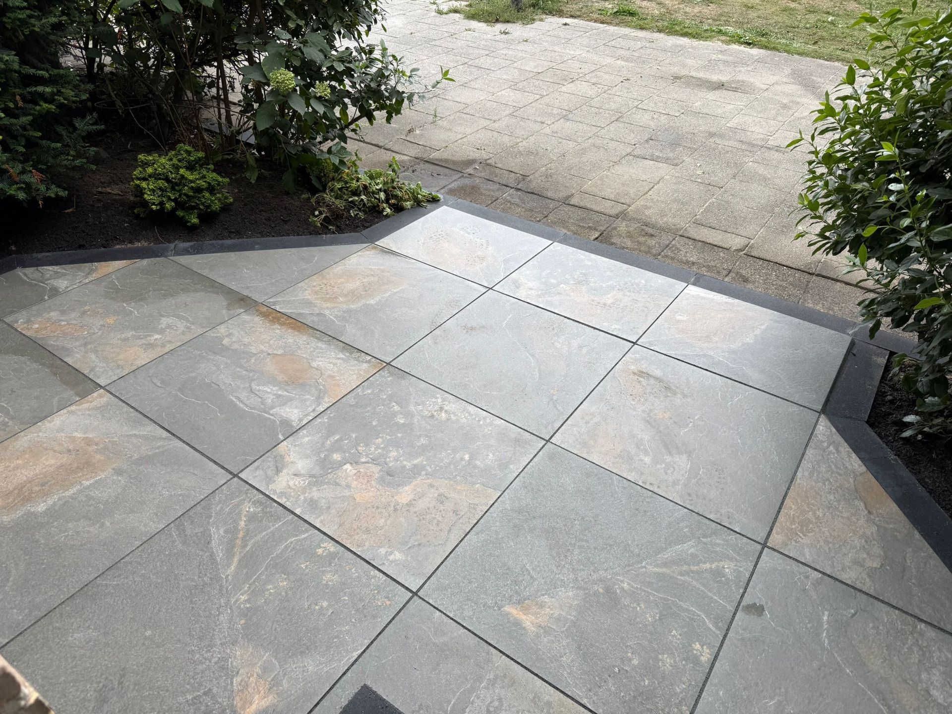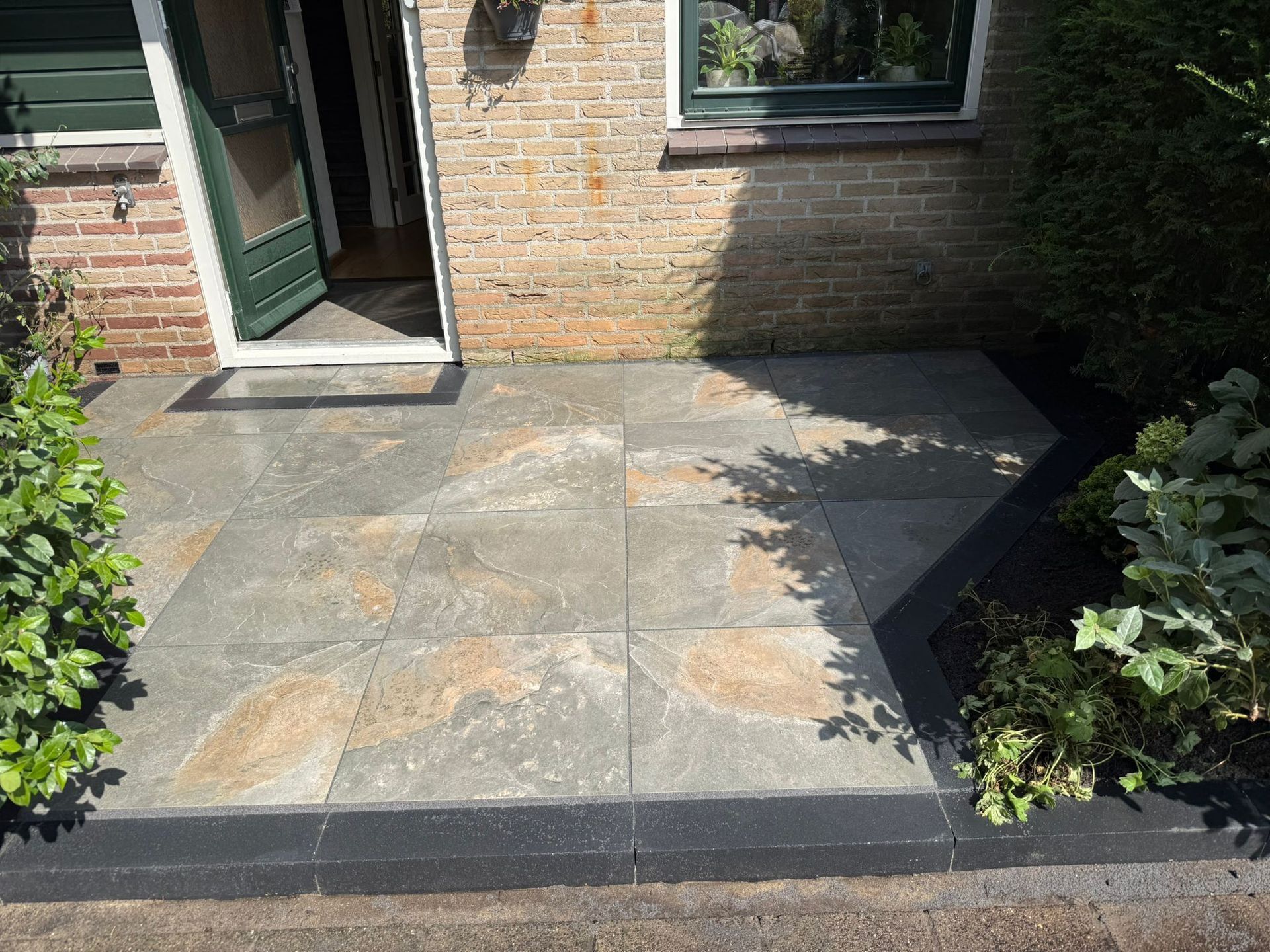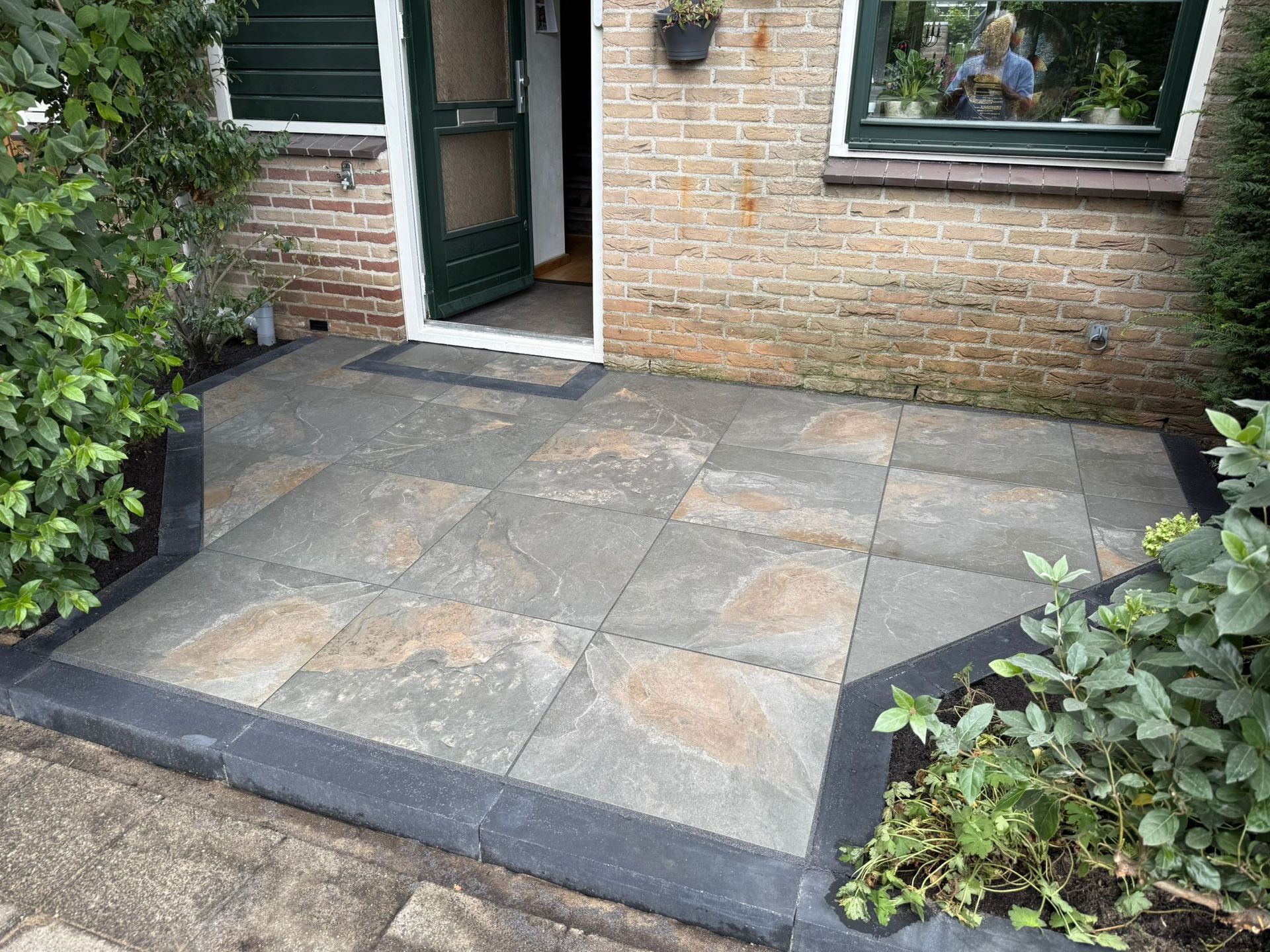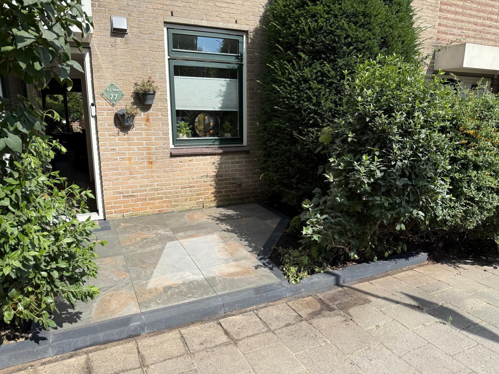 Bij ons staan kwaliteit en duurzaamheid centraal. De betonnen fundering bij de voordeur was al aanwezig; we hebben de tegels en linea blokken aangepast aan de grootte van het stuk fundering. Zo ontstaat een innovatieve oplossing die blijvende stabiliteit biedt. Zo blijft dat stuk strak terwijl de rest er langs af kan zakken. (Grond blijft zakken in delen van Rotterdam)