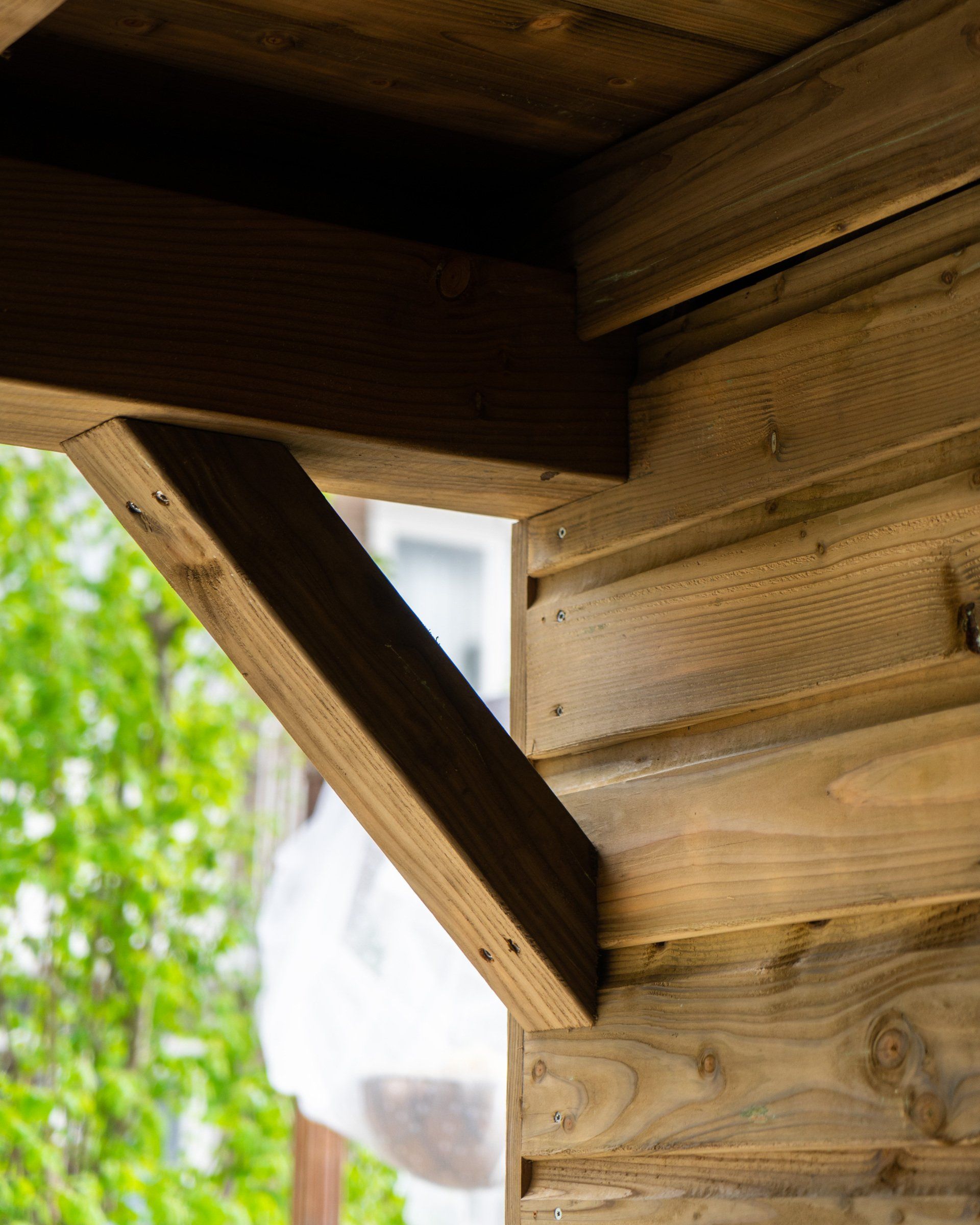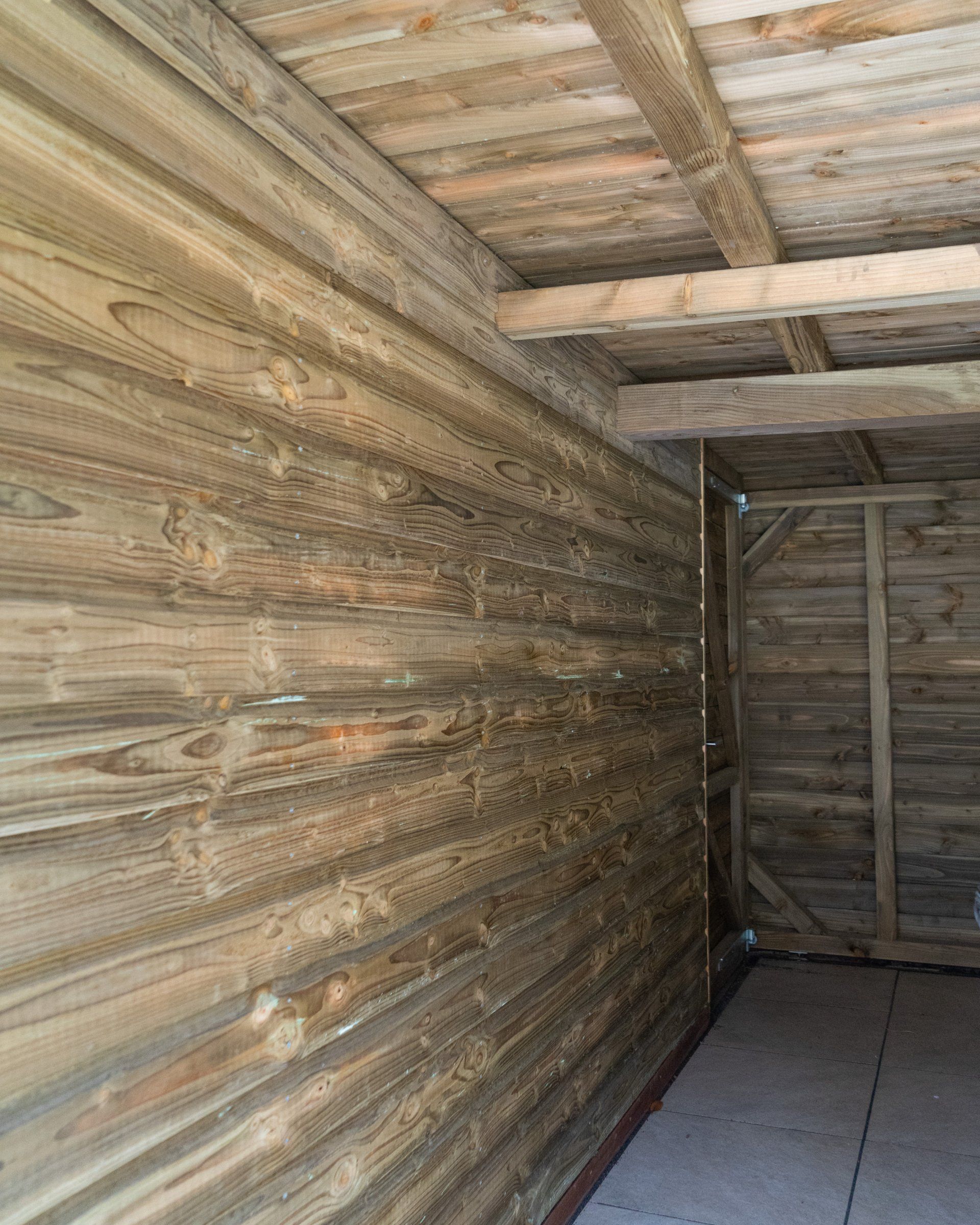 Overkapping met aangrenzende schuur van Douglas rabbat delen.