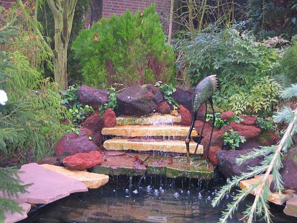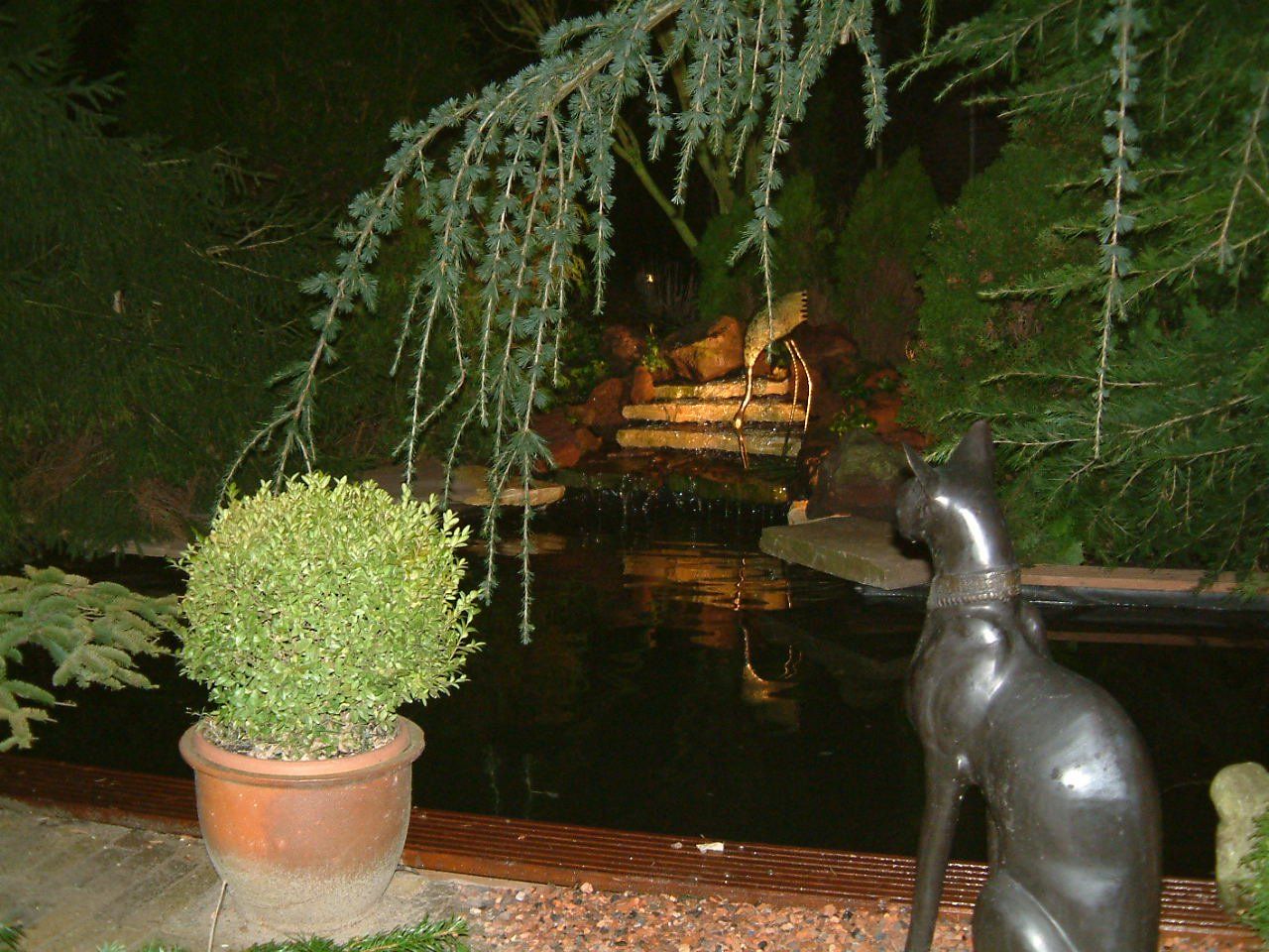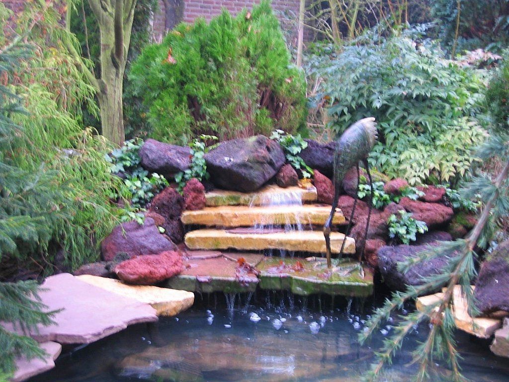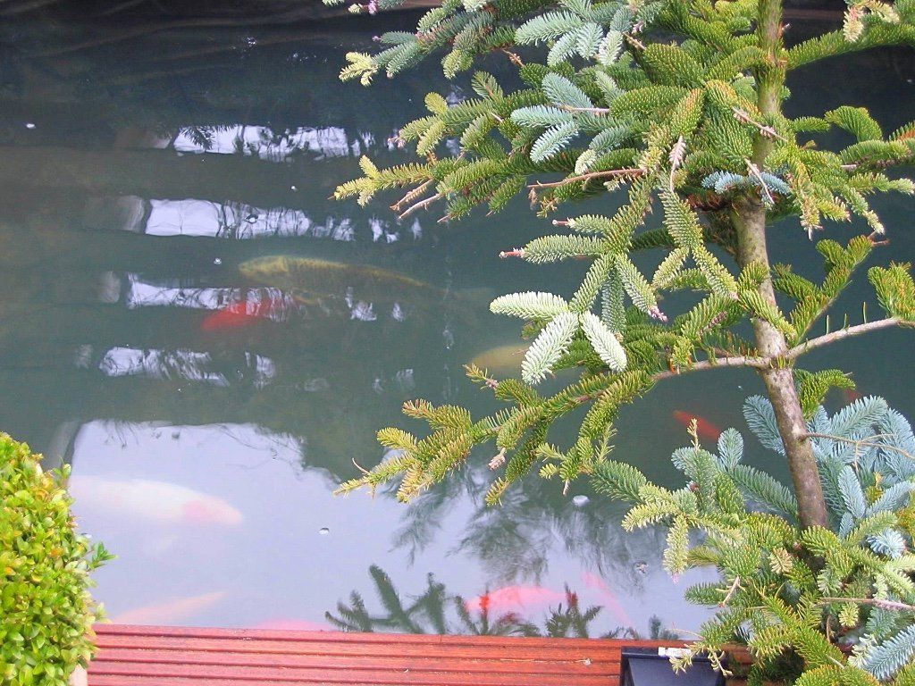 Prachtige vijver aan het huis. Dat met de vele mooie wintergroene beplanting eromheen, zowel in de zomer als in de winter een prachtige aanwinst is.