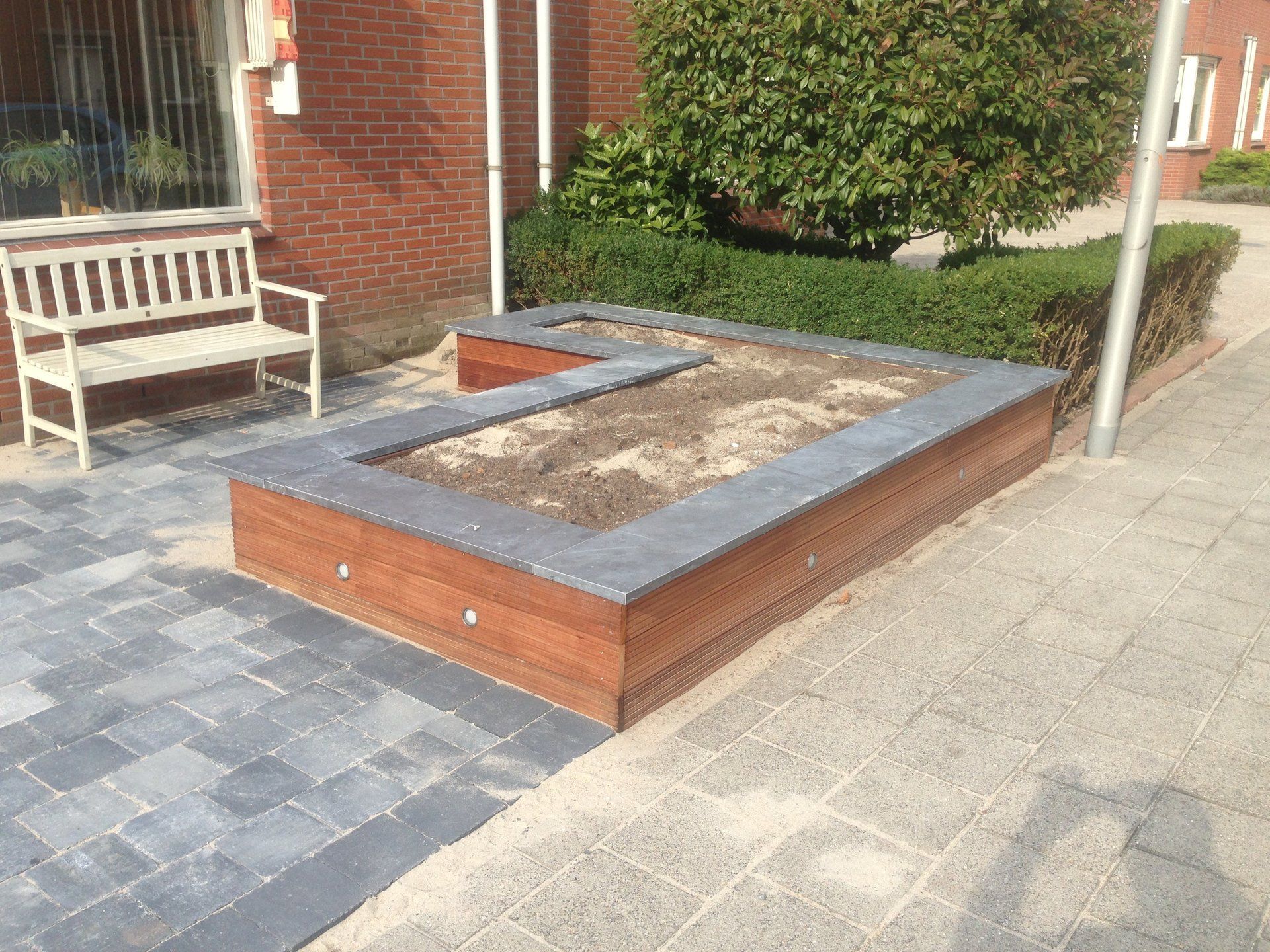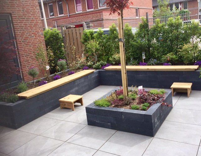 Diverse voorbeelden van verhoogde muurtjes, bloembakken en bankjes, in diverse materiaalsoorten. Alles op maat gemaakt!